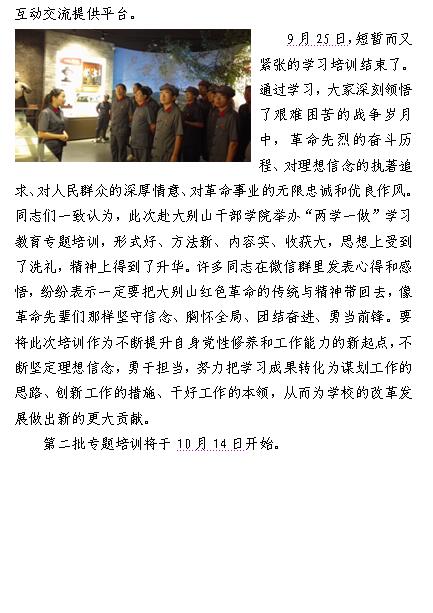 我?!皟蓪W(xué)一做”學(xué)習(xí)教育專(zhuān)題培訓(xùn)在大別山干部學(xué)院成功舉行